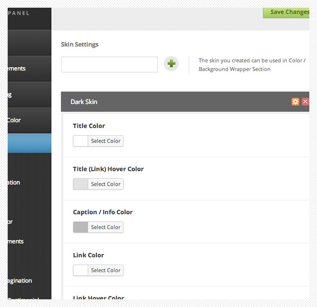 You can create various skin to use on color/parallax section easily. This will help you to be able to create various color tone within your site.